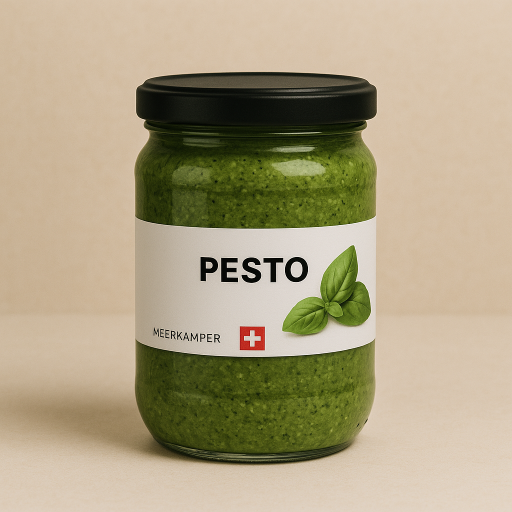 Unser Pesto ist hervorragend hergestellt. Sein Basilikumaroma besticht schon nach dem Öffnen in der Nase. Angemacht zu Teigwaren erlebt man das Aroma dezent vom Knoblauch, dem Olivenöl kaltgepresst und im Mund fällt die Sämigkeit des Pesto auf die er durch die Zugabe von reichlich Pinienkerne erhält.