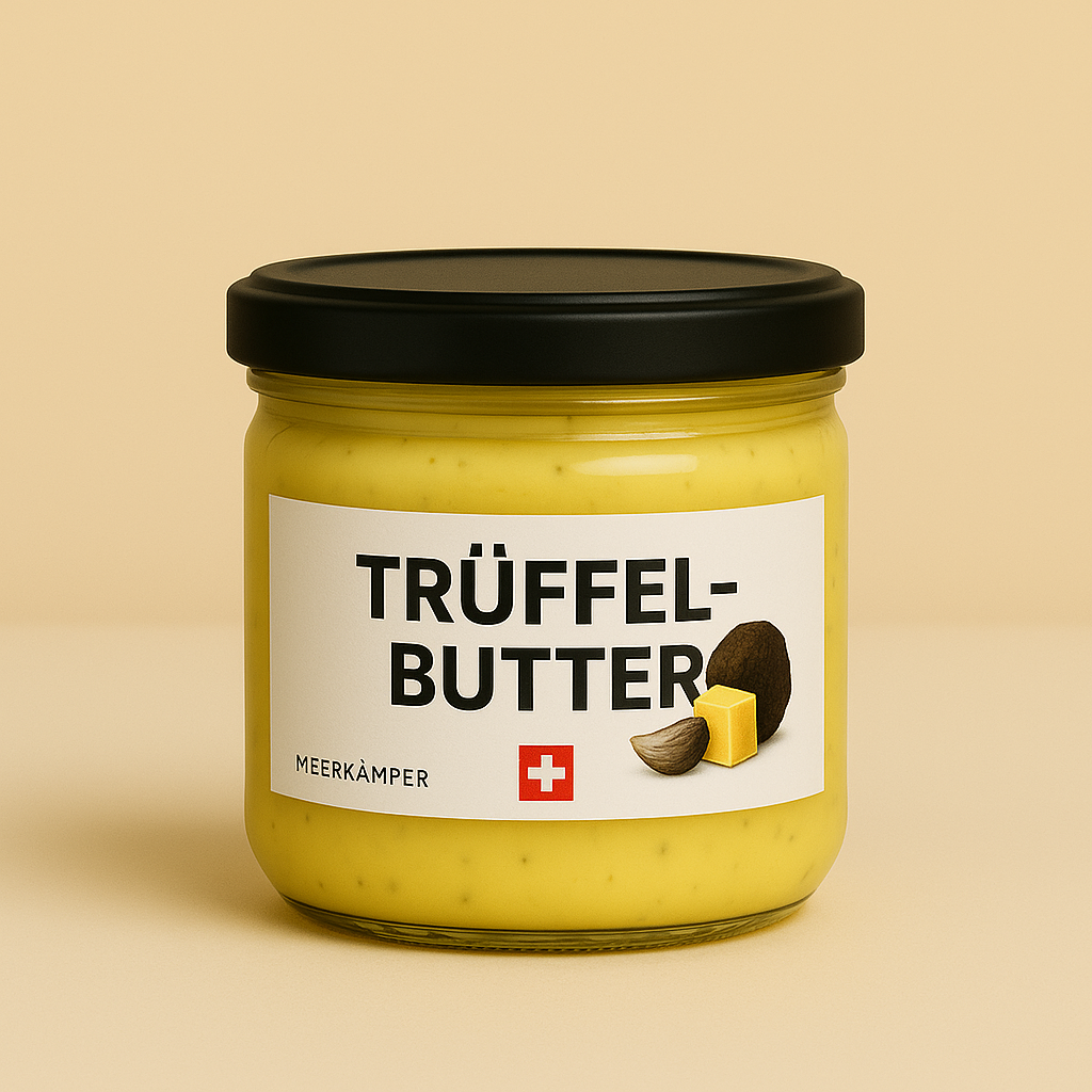 Unsere Trüffelbutter vereint die cremige Konsistenz bester Butter mit dem intensiven, erdigen Geschmack edler Trüffel. Einfach zu Pasta, auf frisch gebackenem Brot oder zum Beispiel auf einem Omelett zergehen lassen – ein Hauch von Luxus für jede Mahlzeit. Geniessen Sie und Ihre Gäste ein unvergessliches Geschmackserlebnis!