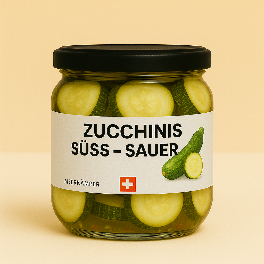 Zuccini, Peperoni, Essig, Salz, Zucker, Senfkörner, Gewürze